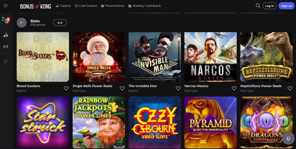 Una plataforma de casino online España que se precie debe ofrecer una amplia variedad de juegos que satisfaga a todos los perfiles de jugadores. Bonuskong Casino no solo cumple esta expectativa, sino que la supera gracias a una asociación con más de 30 estudios de desarrollo de renombre y una plataforma intuitiva que presenta todos los juegos con alta calidad gráfica y fluidez.