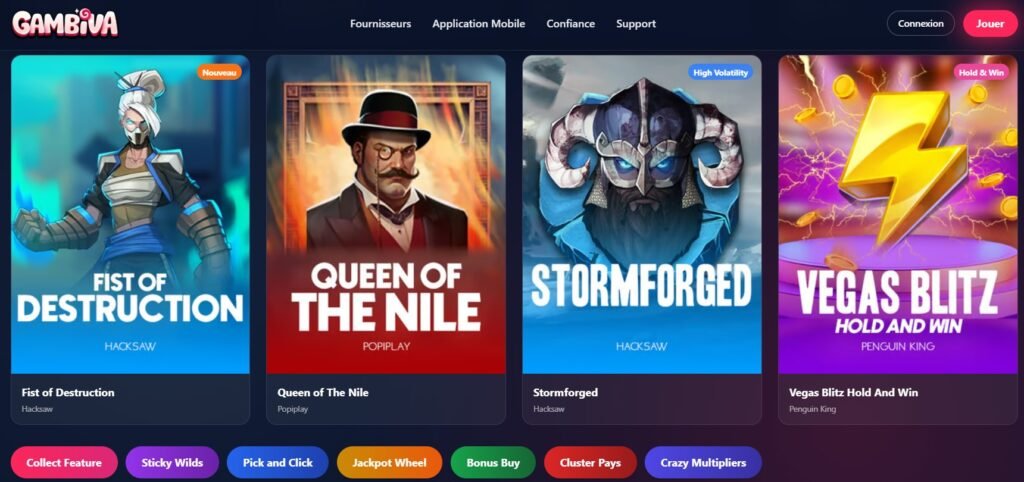 Gambiva Casino se presenta como una plataforma moderna y ágil, diseñada para ofrecer a los jugadores una experiencia fluida con pagos rápidos, juegos icónicos y un enfoque claro en la comodidad desde cualquier dispositivo.